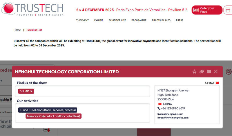 2025年12月2日至4日,TRUSTECH 2025在法國巴黎凡爾賽門展覽中心5.2號館舉行。TRUSTECH是全球支付技術(shù)與數(shù)字安全領(lǐng)域的國際性盛會,致力于創(chuàng)新支付和身份識別解決方案。新恒匯電子股份有限公司攜全球領(lǐng)先的集成電路解決方案參展,涵蓋智能卡封裝材料、工藝、技術(shù)和服務(wù)等方面,吸引了眾多業(yè)內(nèi)人士的關(guān)注,為企業(yè)展示實(shí)力、建立合作提供契機(jī),也有望推動(dòng)行業(yè)發(fā)展,助力全球支付和身份識別領(lǐng)域創(chuàng)新。